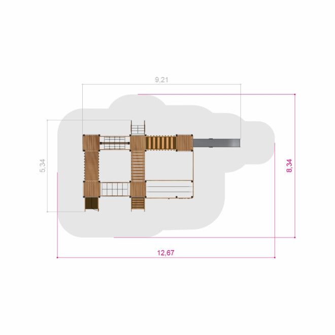 Sørøverbyen Natur II - Legetårn med rutsjebane og klatrevæg - Vis ovenfra