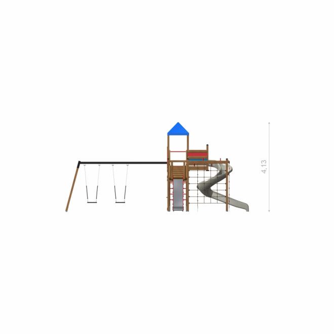 Twister - Legetårn med 2 rutsjebaner og 2 gynger - Vis forfra