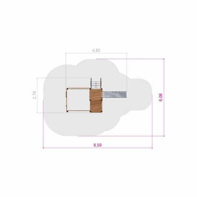 Klatrekiosken Natur - Legehus med rutsjebane og klatrevæg - Vis ovenfra