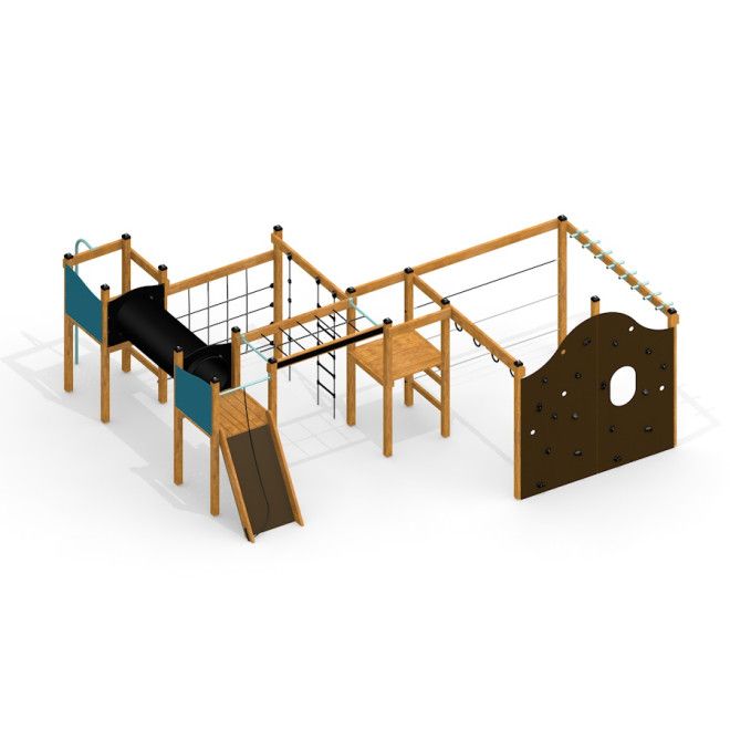 Motorrikken Natur - Klatretårn med tunnel og klatrevæg - Isometrisk visning