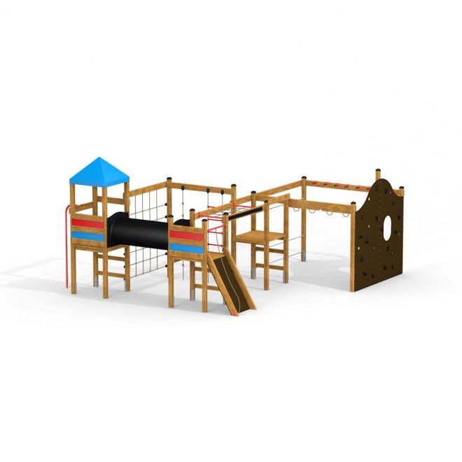 Motorrikken - Klatretårn med tunnel og klatrevæg - Isometrisk visning