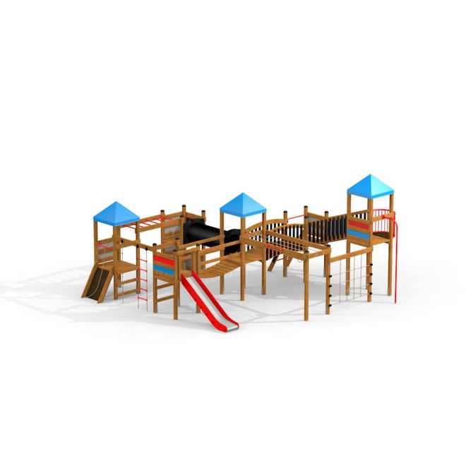Kæmpen - Legetårne med rutsjebane og tunnel - Isometrisk visning