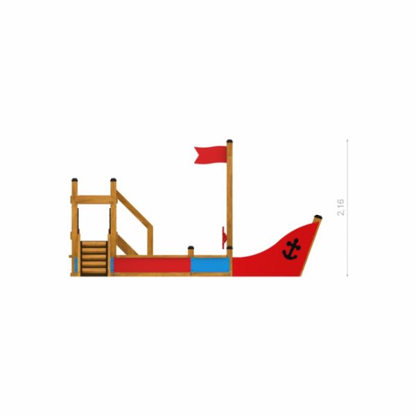 Dette legehus er ikke kun en sandkasse, men også et alsidigt legeanlæg, der indeholder en rutsjebane og en imponerende træmast med et flag, som vækker børnenes fantasi og eventyrlyst. Det er det perfekte valg til børnehaver, vuggestuer, strandlegepladser, parker, badesteder og hoteller, som ønsker at tilbyde et alsidigt og engagerende legeredskab.