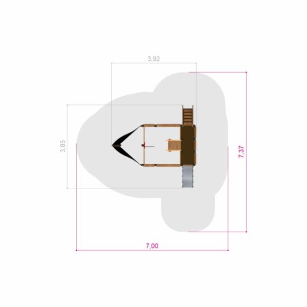 Med en bredde på 395 cm, længde på 386 cm og højde på 216 cm, tilbyder Båden Natur - Legehus med sandkasse og rutsjebane rigelig plads til mange timers leg og udforskning. Legesættets kritiske faldhøjde på 55 cm og krav om sikkerhedszone på 700x737 cm sikrer børnenes sikkerhed under leg.
