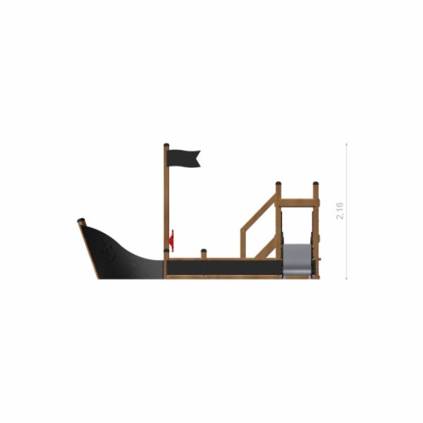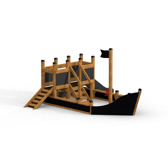 Dette legehus er ikke kun en sandkasse, men også et alsidigt legeanlæg, der indeholder en rutsjebane og en imponerende træmast med et flag, som vækker børnenes fantasi og eventyrlyst. Det er det perfekte valg til børnehaver, vuggestuer, strandlegepladser, parker, badesteder og hoteller, som ønsker at tilbyde et alsidigt og engagerende legeredskab.