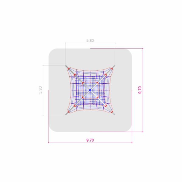 Den innovative struktur består af robust galvaniseret stål og polyamid, som sikrer maksimal holdbarhed og modstand mod vejrforhold. Breva – Klatre pyramide er designet med tanke på sikkerhed og er udstyret med et klatrenet, der minimiserer risikoen for fald og skader. Med en kritisk faldhøjde på 300 cm og en påkrævet sikkerhedszone på 970x970 cm, kan forældre og pædagoger være trygge ved at lade børnene lege frit.