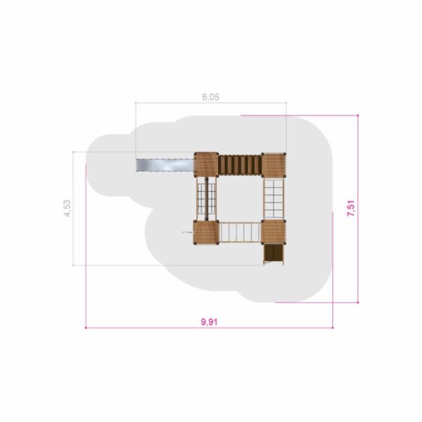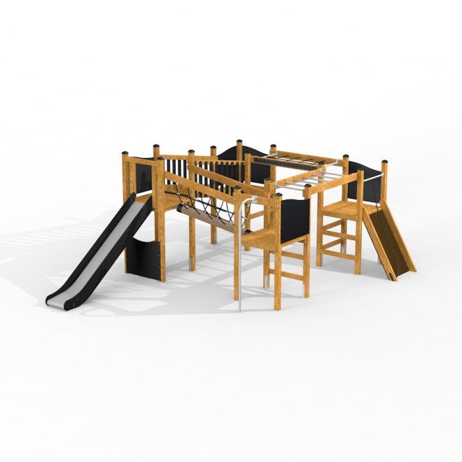 Med integrerede elementer som en rutsjebane og komplette klatresystemer, fremmer Challenger Natur II både motoriske færdigheder og fysisk aktivitet. Perfekt til parker, skoler og offentlige legepladser, det store design kræver en sikkerhedszone på 991x751 cm og et passende faldunderlag for at sikre sikkerheden. Dette klatretårn er ikke kun en investering i underholdning, men også i sund udvikling og velvære for de små.