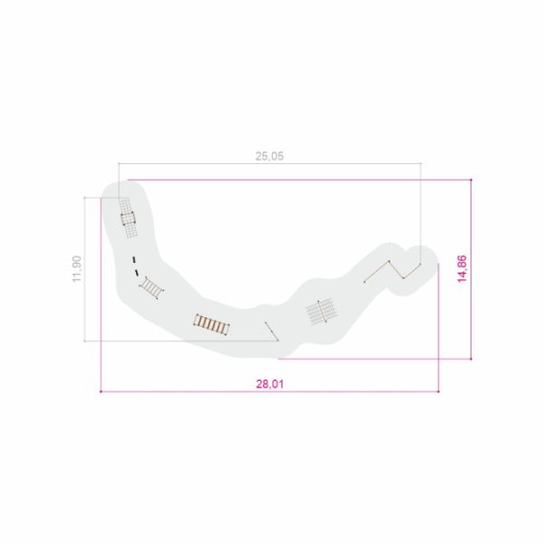 Med en bredde på 2505 cm, en længde på 1190 cm og en højde på 216 cm, tilbyder Classic Nature motorikbane rigelig plads til at børn kan hoppe, klatre, hænge og løbe rundt. Den kritiske faldhøjde på 205 cm og den nødvendige sikkerhedszone på 2801x1486 cm sikrer, at legen er sikker og forsvarlig. Kombinationen af træ, forstærkede polypropylenreb, rustfri stål kæder, HDPE og gummi garanterer både sikkerhed og holdbarhed.