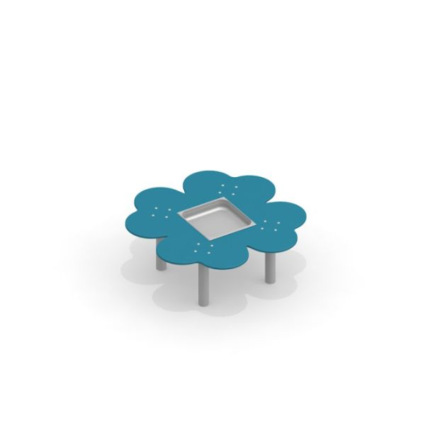 Dette legeredskab til sand giver børnene mulighed for at udforske leg med både sand og vand. Den gennemsigtige beholder i midten af bordpladen gør det muligt for børnene at lege med vand uden risiko for spild, hvilket praktisk talt forvandler sandkasse leg til en beroligende og engagerende aktivitet. Kløverformet legebord passer perfekt i sandområder og kræver ingen særlig faldunderlag, hvilket gør det nemt at integrere på eksisterende legepladser.