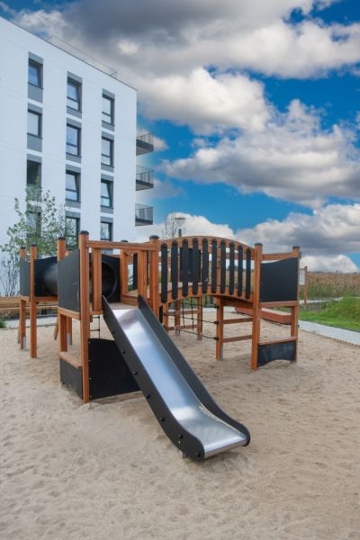 Firkanten Natur - Klatretårn med rutsjebane og tunnel er ikke bare et legestativ, men en investering i børns leg og udvikling. Det tilbyder en række stimulerende muligheder, fra klatring til rutsjeture, som styrker børns koordination og balance. Samtidig sikrer dets tidløse design, at det kan integreres harmonisk i enhver udendørs miljø, og tilbyder et attraktivt og funktionelt fokalpunkt for alle børns legen.