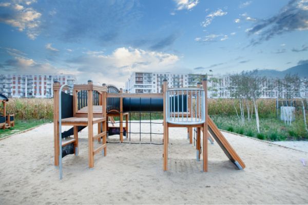 Dette klatretårn rutsjebane system er designet med børns sikkerhed og sjov som topprioriteter. Det inkluderer en stor sikkerhedszone på 994x767 cm, der giver børnene rigelig plads til at udforske og lege uden risiko. Kombinationen af en rutsjebane, klatre net og tunnel gør dette legetårn ideelt til at stimulere børns fantasi og motoriske færdigheder, samtidig med at de har en uforglemmelig legetid.