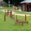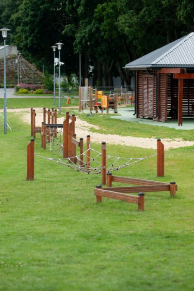 Forhindringsbane består af en række enestående elementer såsom en robust træ-balancebom, net til klatring, små hoppeplader og stiger. Hver enkelt komponent er omhyggeligt konstrueret af højkvalitets lærketræ, som sikrer exceptionel styrke og holdbarhed. Det pulverlakerede stål og forstærkede reb af polypropylen giver ikke alene stabilitet men også en sikkerhedszone skolebørn kan lege sikkert indenfor.