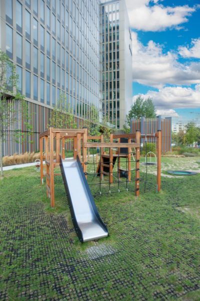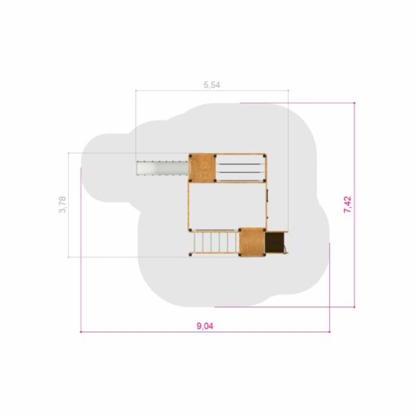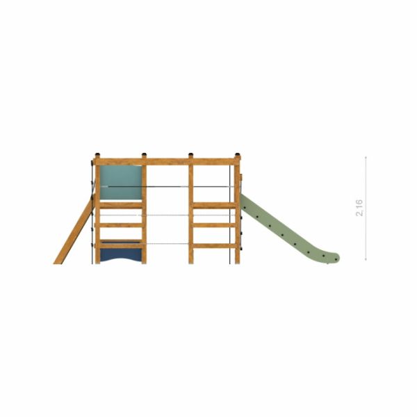 Gorilla Natur - Legetårn med rutsjebane og klatrenet er perfekt til børn over tre år, som ønsker at udfordre deres styrke og dygtighed. Det store legetårn tilbyder en bred vifte af aktiviteter, fra klatring og hængning til rutsjebane glæde. Med kritiske faldhøjder og sikkerhedszoner nøje beregnet, er sikkerheden altid i fokus, hvilket gør det ideelt for både offentlige parker og private haver.