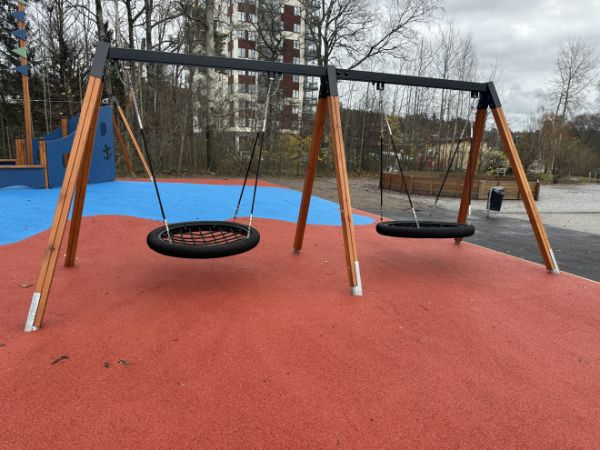 Gyngestativ med fugleredegynge 120 cm – dobbelt er et unikt og børnevenligt gyngestativ designet til både private og offentlige rum. Gyngestativets dobbelt struktur gør det muligt for to børn at gynge samtidig, hvilket skaber dobbelt så meget glæde og social interaktion.