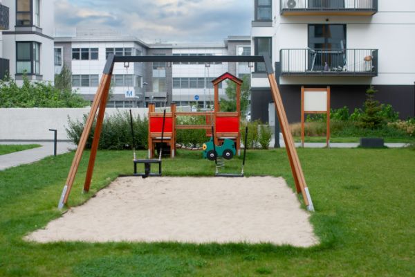 Legeredskabet er specielt velegnet til vuggestuer, børnehaver, skoler, fritidsinstitutioner og private haver. Dets robuste konstruktion og brug af naturlige materialer integreres harmonisk i alle slags miljøer og skaber en indbydende legeplads, hvor børn kan udforske og udvikle deres motoriske færdigheder. Med en sikkerhedszone på 317x750 cm og en kritisk faldhøjde på 135 cm, opfylder gyngestativet de nødvendige sikkerhedsstandarder, hvilket gør det til et pålideligt valg for enhver udendørs legeplads.