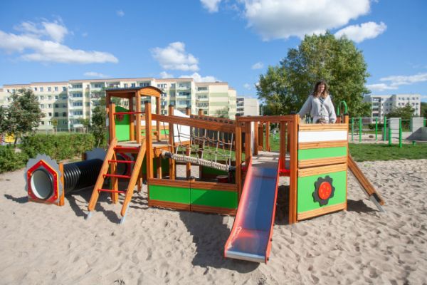 Børn vil nyde de spændende rutschebaner lavet af både lærketræ og rustfrit stål, som garanterer glidende og sikre ture. De forstærkede reb af polypropylen samt de skridsikre, vandfaste krydsfinerplader øger sikkerheden og tillader en tryg og stabil leg. Samtidig giver stålplader dækket med plastisol ekstra komfort og funktionalitet.