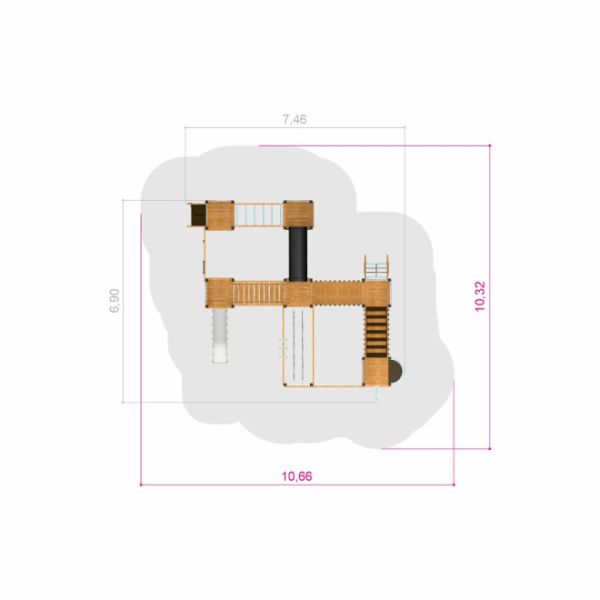 Dette imponerende legetøj passer perfekt til offentlige parker, skoler, og boligområder, hvor der er behov for pålidelige og spændende legeredskaber. Med en bredde på 704 cm, længde på 746 cm og højde på 276 cm er Kæmpen Natur stor nok til at rumme flere børn på én gang, hvilket fremmer socialt samspil og legekammerater.