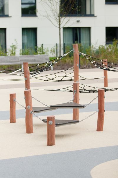 Kentucky – Balancebane er ikke blot et stykke legeudstyr, men en investering i børns fysiske udvikling. Robuste materialer som robinietræ og rustfrit stål kombineret med nøje afrundede hjørner garanterer børns sikkerhed under leg. Dens kompakte dimensioner på 120 x 255 cm gør den ideel til både store og små legeområder, mens den kritiske faldhøjde på 55 cm yder ekstra beskyttelse.