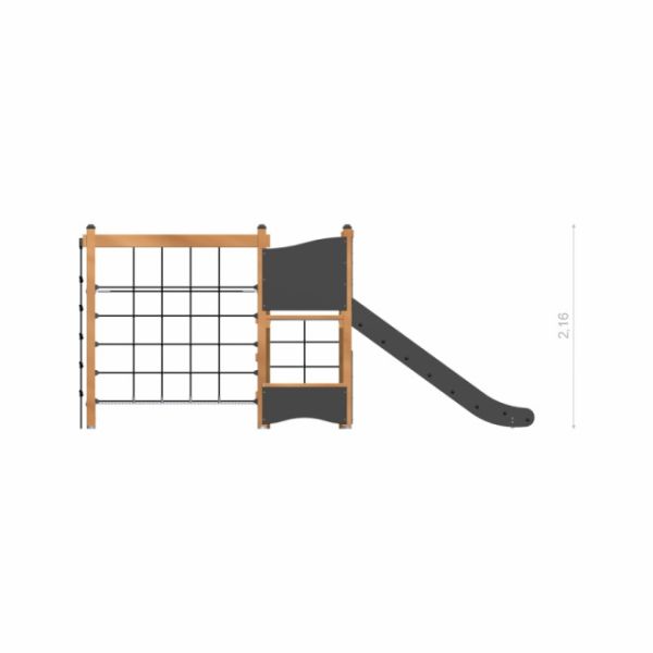 En af de mest unikke egenskaber ved Klatrekiosken Natur - Legehus med rutsjebane og klatrevæg er dens alsidighed. Legestrukturen indeholder en rutsjebane, lodrette reb-stiger, platforme og en robust klatrevæg træ, der alle bidrager til at udvikle barnets motorik. Børnene kan udforske, klatre og glide sikkert, mens de nyder timevis af aktiv leg.