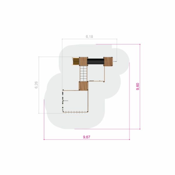 Motorrikken Natur - Klatretårn med tunnel og klatrevæg fra Larslaj's Classic Nature linje repræsenterer toppen af legeområdeinnovation. Dette legende mesterværk, designet til børn fra tre år og opefter, er både en visuelt tiltalende og funktionelt robust struktur. Med en imponerende bredde på 618 cm, en længde på 626 cm og en højde på 276 cm, tilbyder dette klatretårn en omfattende udfordrelseszone, hvor aktive børn kan udforske og udvikle deres færdigheder.