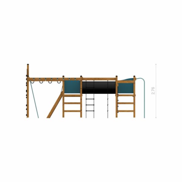Motorrikken Natur - Klatretårn med tunnel og klatrevæg inkluderer en klatreplatform, en lang tunnel, brandmandsstang samt et rigt udvalg af klatrenet og stiger. Disse elementer er specielt designet til at fremme børns motoriske færdigheder og sociale interaktion. Hvert materiale anvendt i konstruktionen er valgt med nøje omhu - fra lærketræ, rustfrit stål, og galvaniseret stål, til lidt og blødt polypropylen reb, skridsikkert, vandfast krydsfiner, en rustfrit stål kæde, HDPE, og gummi.