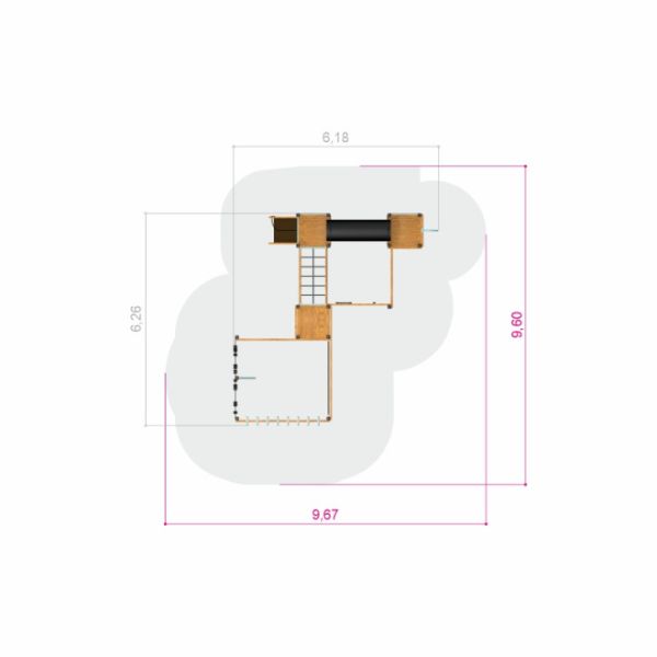 Motorrikken Natur - Klatretårn med tunnel og klatrevæg fra Larslaj's Classic Nature linje repræsenterer toppen af legeområdeinnovation. Dette legende mesterværk, designet til børn fra tre år og opefter, er både en visuelt tiltalende og funktionelt robust struktur. Med en imponerende bredde på 618 cm, en længde på 626 cm og en højde på 276 cm, tilbyder dette klatretårn en omfattende udfordrelseszone, hvor aktive børn kan udforske og udvikle deres færdigheder.