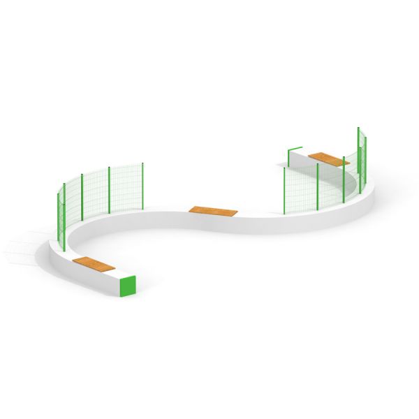 Den er konstrueret af højkvalitetsmaterialer, herunder stå og lerketræ, der sikrer holdbarhed og æstetisk appel. Pulverlakeret stål og beton yder ekstra beskyttelse mod elementerne, hvilket gør Multiarenaen ideel til udendørs anvendelse året rundt. De integrerede beskyttelsesnet og bænkedele forbedrer brugeroplevelsen ved at tilbyde sikre og behagelige områder til både tilskuere og spillere.