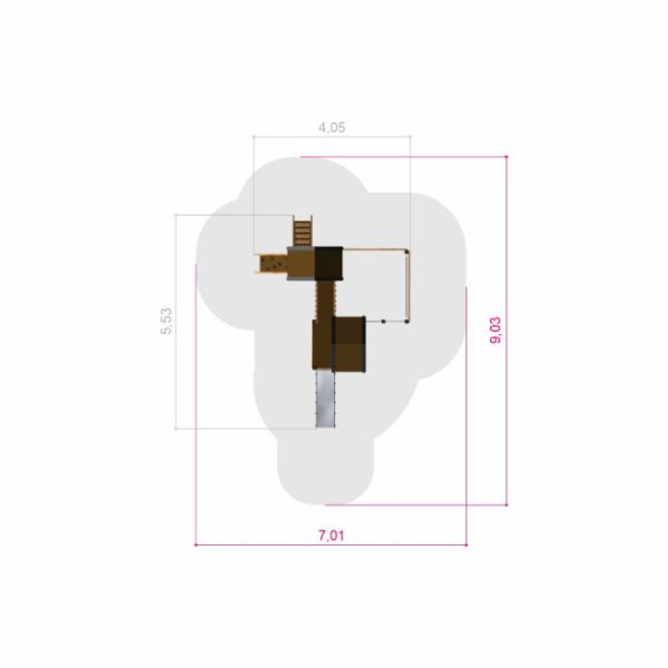 Ridderslottet Natur med klatrenet leveres med en rummelig sikkerhedszone på 701x903 cm, hvilket gør installationen af faldunderlag påkrævet for optimal beskyttelse. Denne alsidige legeplads er også perfekt til dem, der søger legepladsudstyr børn, der kombinerer leg og læring på en sikker og sjov måde.