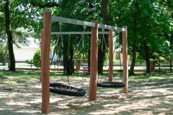 Robiniegyngestativ kombi med 2 fugleredegynger 120 cm fra Larslaj er den ideelle løsning til moderne legepladser, der ønsker at tilbyde børn en unik og sjov oplevelse. Dette gyngestativ, en del af vores Nature produktlinje, kombinerer robust design med æstetisk tiltalende materialer - alt sammen med fokus på sikkerhed og holdbarhed.