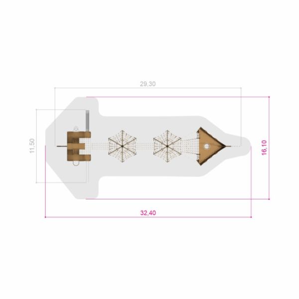 Denne imponerende klatre pyramide er ideel til offentlige legepladser, skoler, og boligforeninger, hvor børn har brug for sikre og udfordrende legeområder. Den store bredde på 1150 cm og længde på 2930 cm giver masser af plads til flere børn at lege samtidigt, hvilket gør det til et perfekt samlingssted for gruppesocialisering og fælles leg. Den er designet med et stålsikkert fundament for at sikre langvarig anvendelse uden bekymringer.