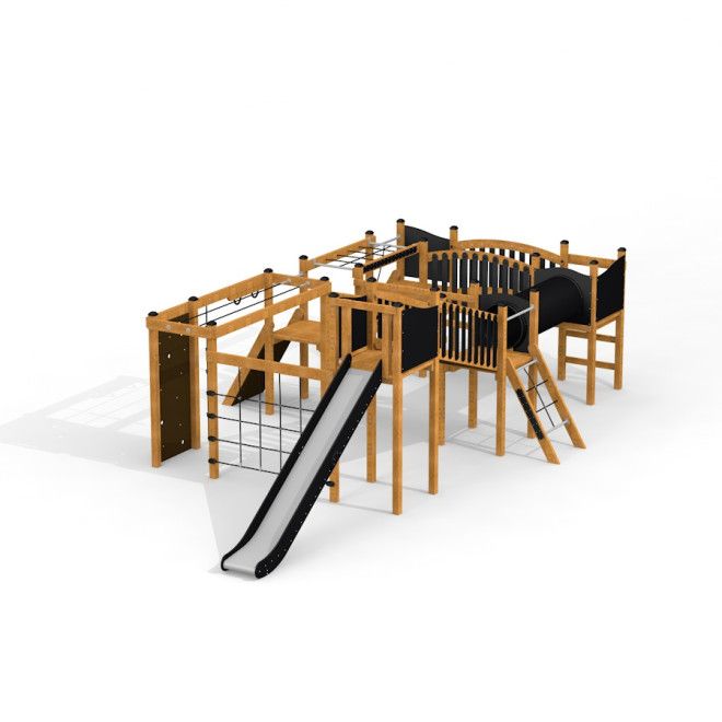 Oplev magien af Sørøverbyen Natur - Legetårn med rutsjebane, tunnel og klatrevæg, hvor hver dag forvandles til et nyt eventyr. Dette unikke legetårn fra Larslaj kombinerer spændende eventyr med børns udvikling, hvilket gør det til det perfekte valg for legepladser. Med robuste trækonstruktioner og skridsikkert design, sikrer Sørøverbyen Natur maksimal sikkerhed gennem brug af stærke materialer som lærketræ, rustfrit stål og forstærkede polypropylenreb.
