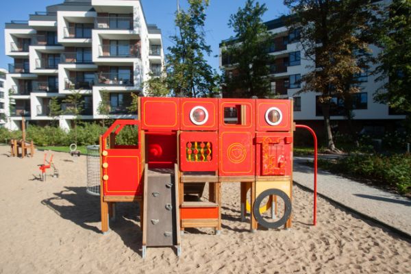 En central del af dette legehus er den rummelige platform, hvor børn kan lege og forestille sig at være chauffører af en stor lastbil. Den komfortable gulvhøjde på 90 cm gør det nemt og sikkert for børnene at bevæge sig rundt. Når de er klar til at afslutte legen eller tage en pause, kan de glide ned ad den integrerede rutsjebane.