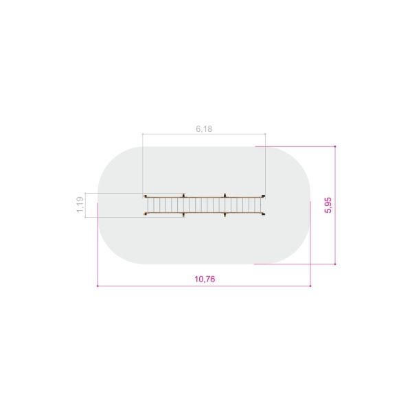 Med en bredde på 119 cm, en længde på 618 cm og en højde på 306 cm, tilbyder Trippel Armgang rigeligt med plads til forskellige træningsøvelser. Den kritiske faldhøjde på 295 cm og sikkerhedszonen på 1076x595 cm sikrer, at brugerne kan træne sikkert. Den krævede faldunderlag yder ekstra sikkerhed og gør dette sportsudstyr ideelt til offentlige legepladser, skolegårde, og fitnessparker.