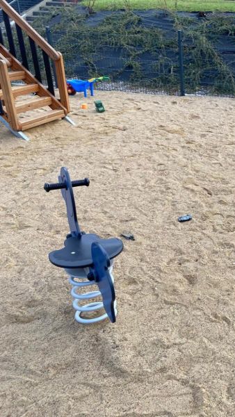 Vippedyr – Hunden er udformet med en solid metal konstruktion, hovedsageligt bestående af pulverlakeret stål og HDPE-materiale. Disse kvalitetsmaterialer sikrer ikke blot modstandsdygtighed over for forskellige vejrforhold, men garanterer også sikkerheden for børn, som elsker at lege på hunden vippedyr. Med dimensioner på 33 cm i bredde, 94 cm i længde og 82 cm i højde passer denne gynge perfekt ind i enhver sikkerhedszone på 347x233 cm.